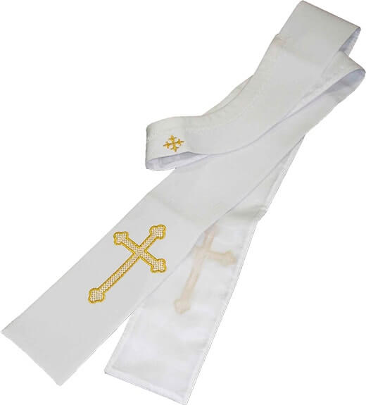 - Bordado dorado con la Cruz y IHS en la parte delantera y trasera.