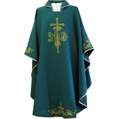 - Bordado dorado con la Cruz y IHS en la parte delantera y trasera.