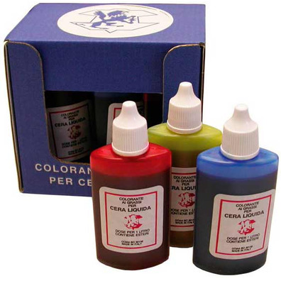 Colorante amarillo, azul y rojo para cera líquida
