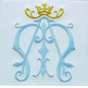 - Letras "A" y "M" bordadas con hilo azul (iniciales de Ave María).