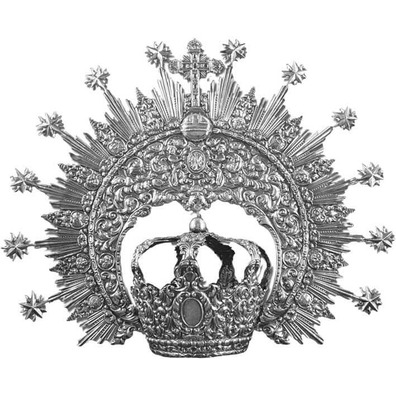 - Aureola rematada con doce rayos estampados con estrellas y una Cruz en la zona superior.