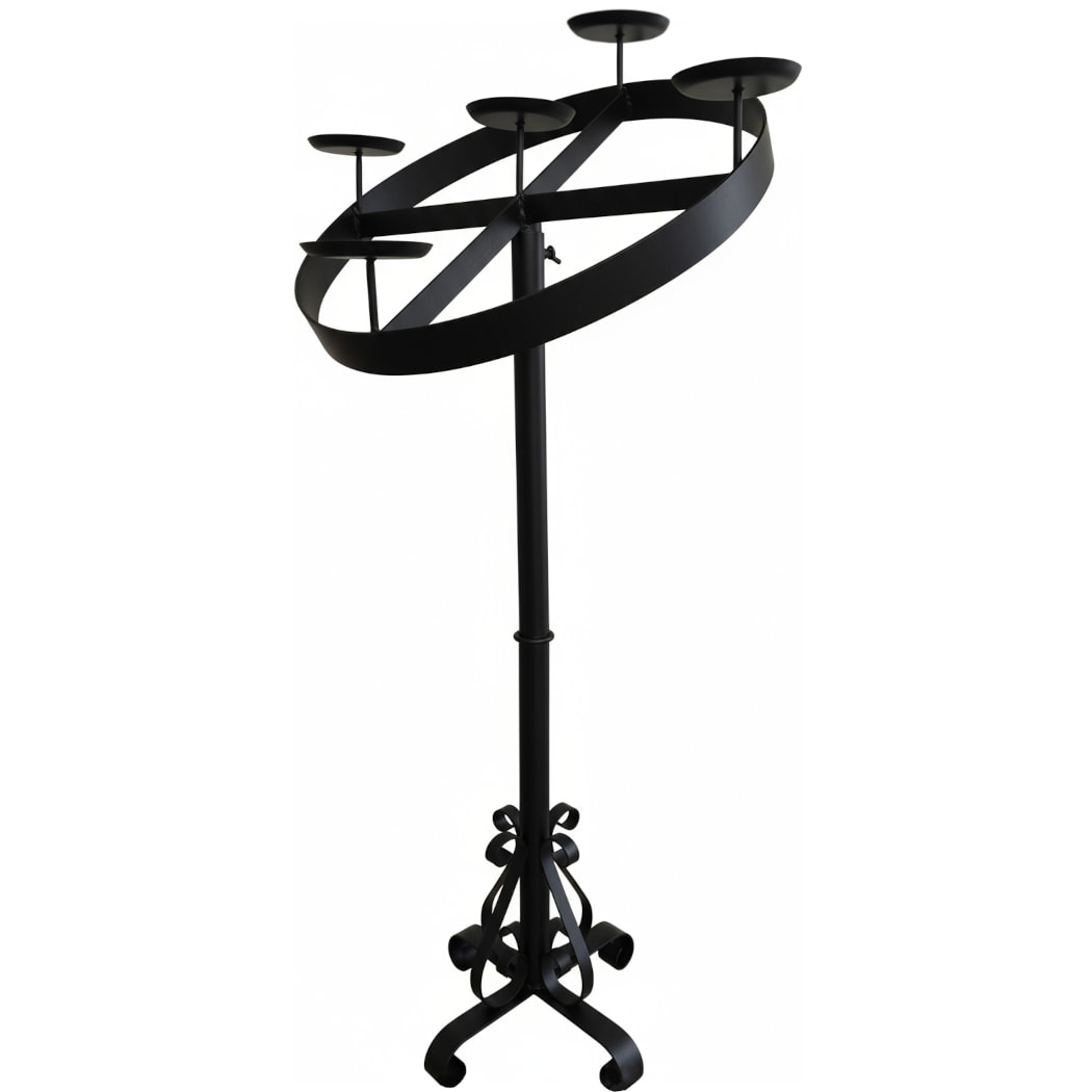 La corona Adviento es un candelero litúrgico con cinco porta velas para los cuatro domingos de Adviento y el día de Navidad. Su estructura metálica con altura regulable facilita el encendido progresivo durante los cuatro domingos, manteniendo estabilidad y visibilidad en el presbiterio.