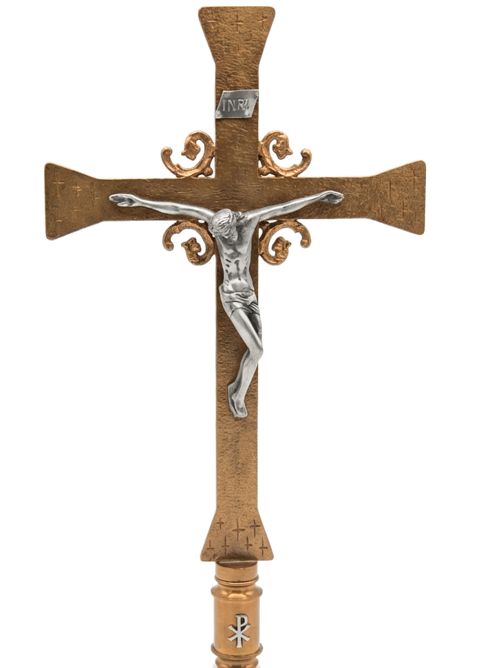 Cruz parroquial de fundición con baño dorado