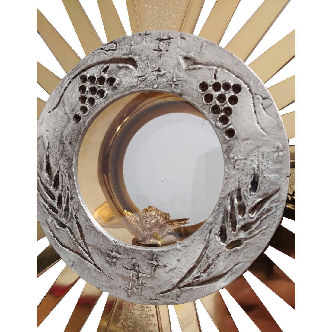 Esta pieza orfebre tiene cincelados en la zona de viril distintos elementos eucarísticos.