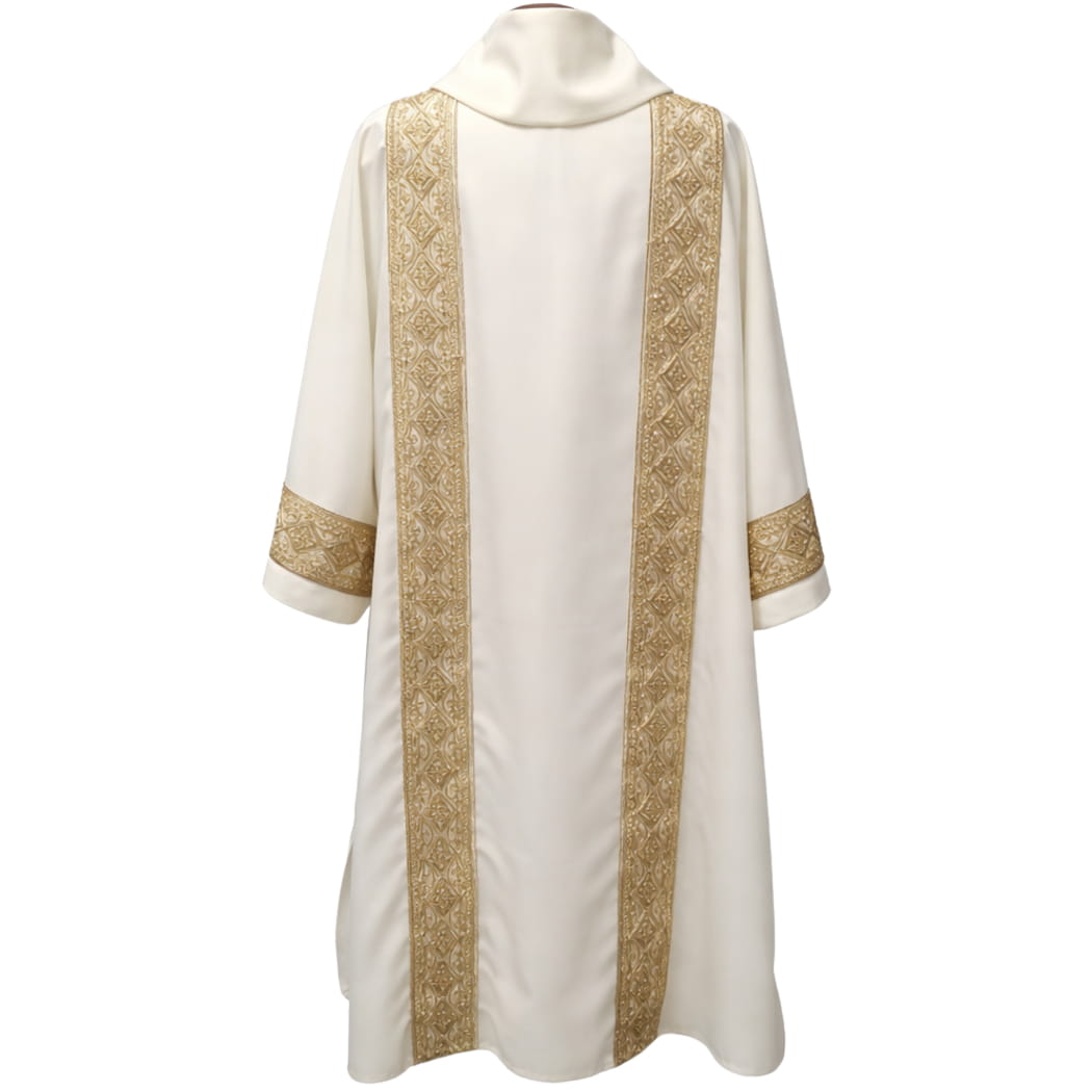 Dalmática diaconal con galones de pasamanería