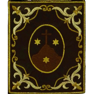 La segunda pieza que forma parte del Escapulario de la Orden Carmelita está decorada con varios elementos marianos bordados.