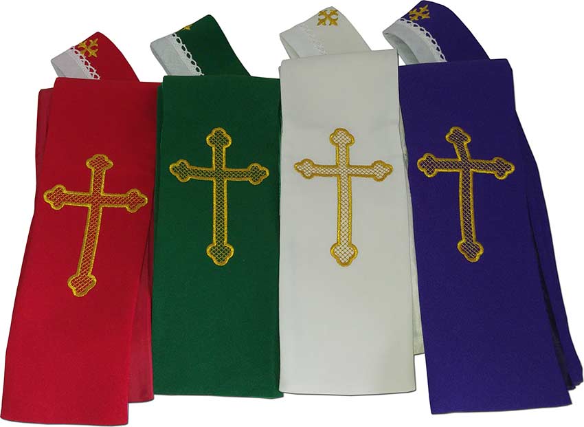 - Estola a la venta en los cuatro colores litúrgicos: blanco, morado, verde y rojo.