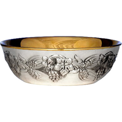 - Decoración en relieve con elementos litúrgicos: uvas y espigas.