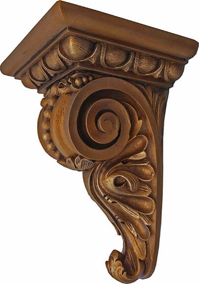 - Decorada con elementos en relieve imitando las peanas de madera tallada.