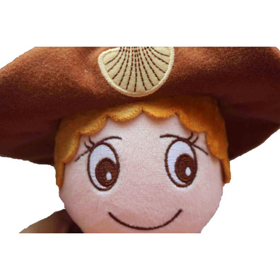 - Zurrón o alforja. El peluche porta en su mano izquierda una bolsa marrón. El zurrón servía a los peregrinos para guardar todos aquellos objetos y alimentos necesarios para llegar a Compostela.