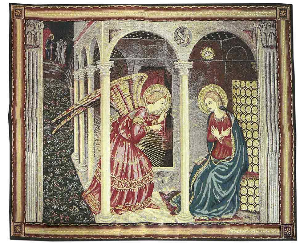 El tapiz recrea el famoso cuadro de “La Anunciación” de Beato Angélico. Es una reproducción fidedigna pero determinados aspectos del cuadro no han podido reproducirse en el tapiz por su proceso de fabricado.
